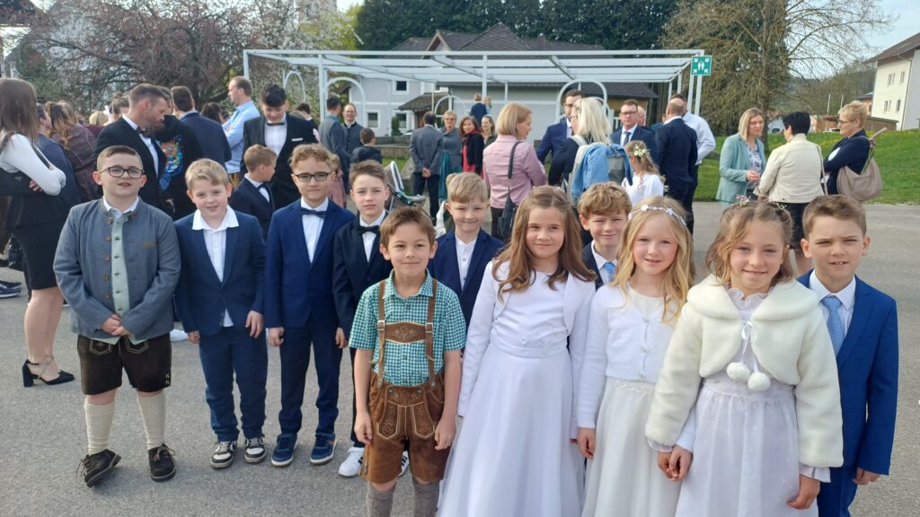 Am 19.04 feierten die Kinder aus der 2. Klasse das Erstkommunionsfest. Dazu bereiteten sich die Kinder gemeinsam mit unserer Religionslehrerin, den Klassenlehrerinnen und den Eltern lange darauf vor. Es war wieder ein wunderschönes Fest!