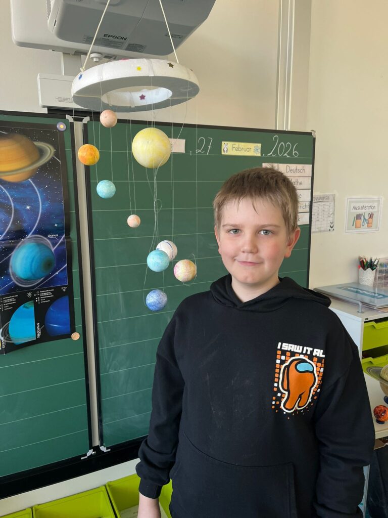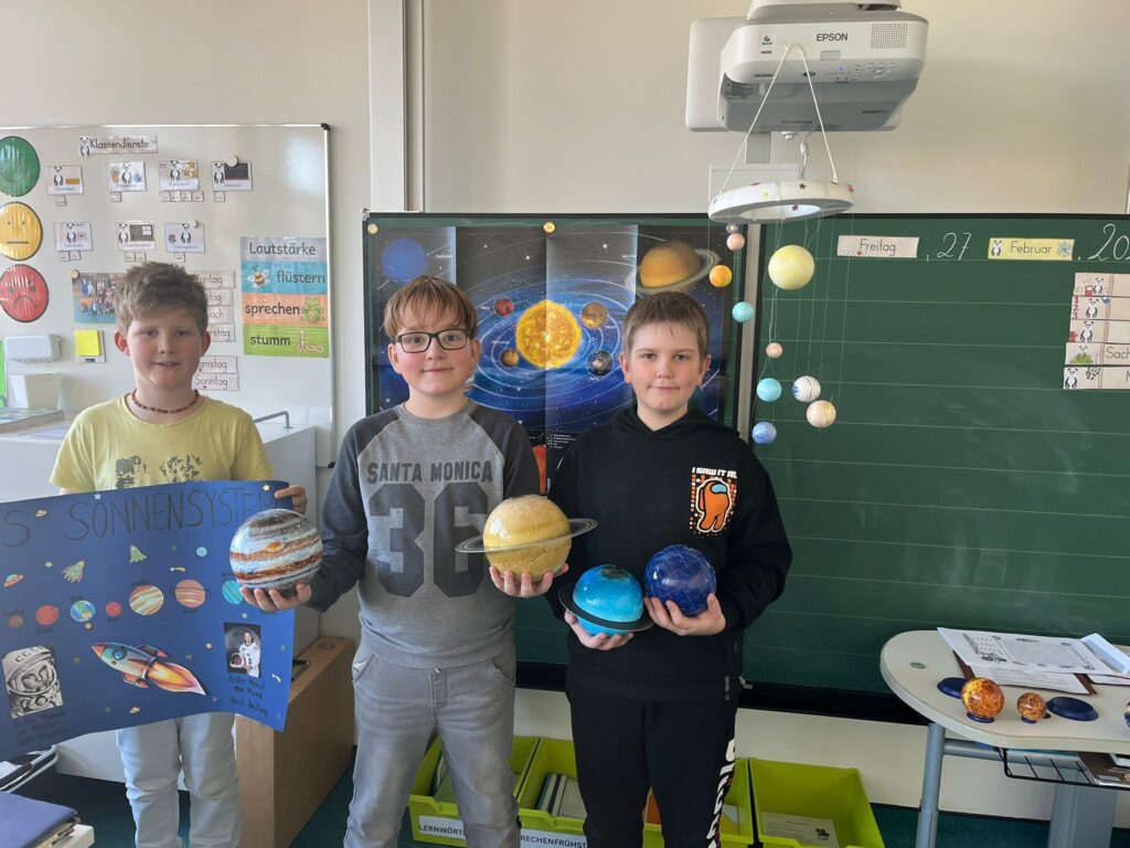 Drei Kinder aus der 4a haben sich freiwillig dazu entschieden, außerhalb des Unterrichts eine Präsentation zum Thema Planeten und Sonnensystem vorzubereiten. Damit abgeprüft werden konnte, ob wir alle gut aufgepasst haben, musste danach noch ein kleines Quiz absolviert werden. Danke für diese tolle Präsentation und die gute Vorbereitung.